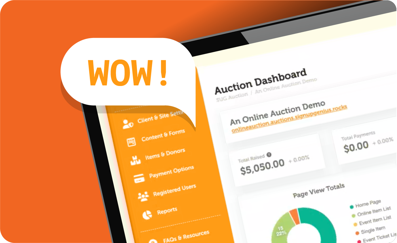 Whether you're raising money for a school event, charity fundraiser, or team trip, SignUpGenius {{auctionsshortname}} gives you the tools to launch and manage a successful virtual auction—without the hassle.